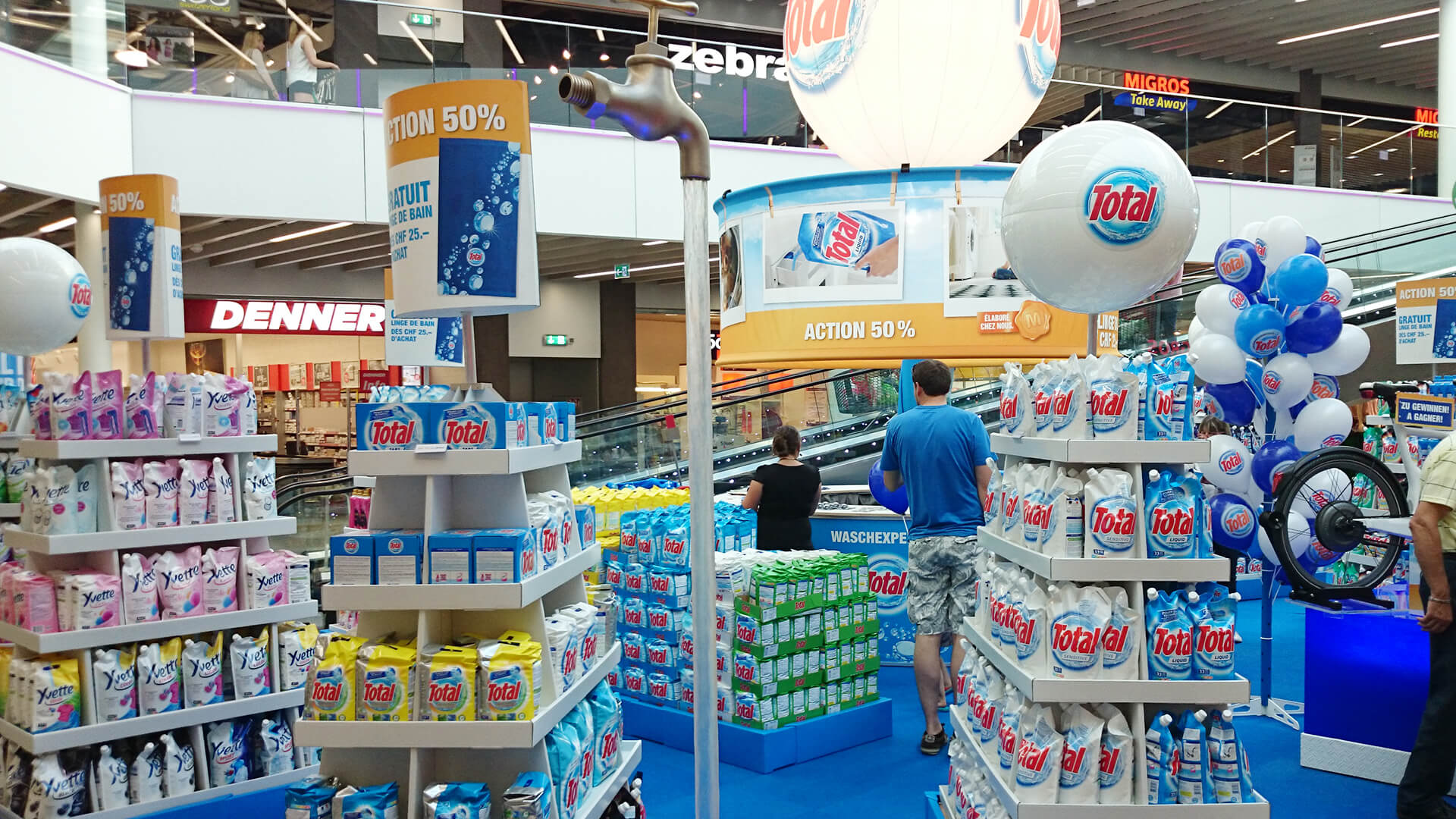 Seit 2013 sind wir für das meistgekaufte Waschmittel der Schweiz unterwegs. «Total on Tour» ist eine Grosspromotion in Form einer Roadshow und regelmässig in MIGROS-Filialen zu Gast.
